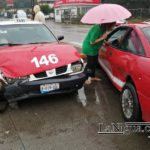 Córdoba, Ver.-Dos lesionados, daños materiales por 15 mil pesos y bloqueo parcial de la vialidad fue el saldo de un choque entre un auto de alquiler y un vehículo particular sobre el bulevar Córdoba-Fortín a la altura de San Nicolás.