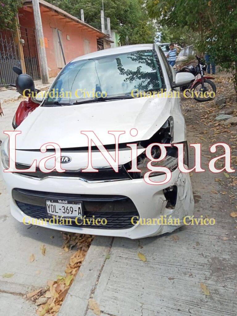 El vehículo Kia terminó con daños materiales considerables, mientras que la motocicleta de la marca Italika, FT150, de color negra presentó daños materiales mínimos.
