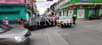 Córdoba, Ver.- Solo daños materiales mínimos, así como la presencia de paramédicos de Cruz Roja y autoridades de Tránsito Municipal dejó la tarde de este domingo el choque entre un vehículo particular y el taxi marcado con el número CO-468, debido a que uno de los conductores al no respetar la luz roja del semáforo provocó el accidente en el cruce de la avenida 1 y calle 15 en la colonia Centro quedando las unidades atravesadas y con daños materiales.
