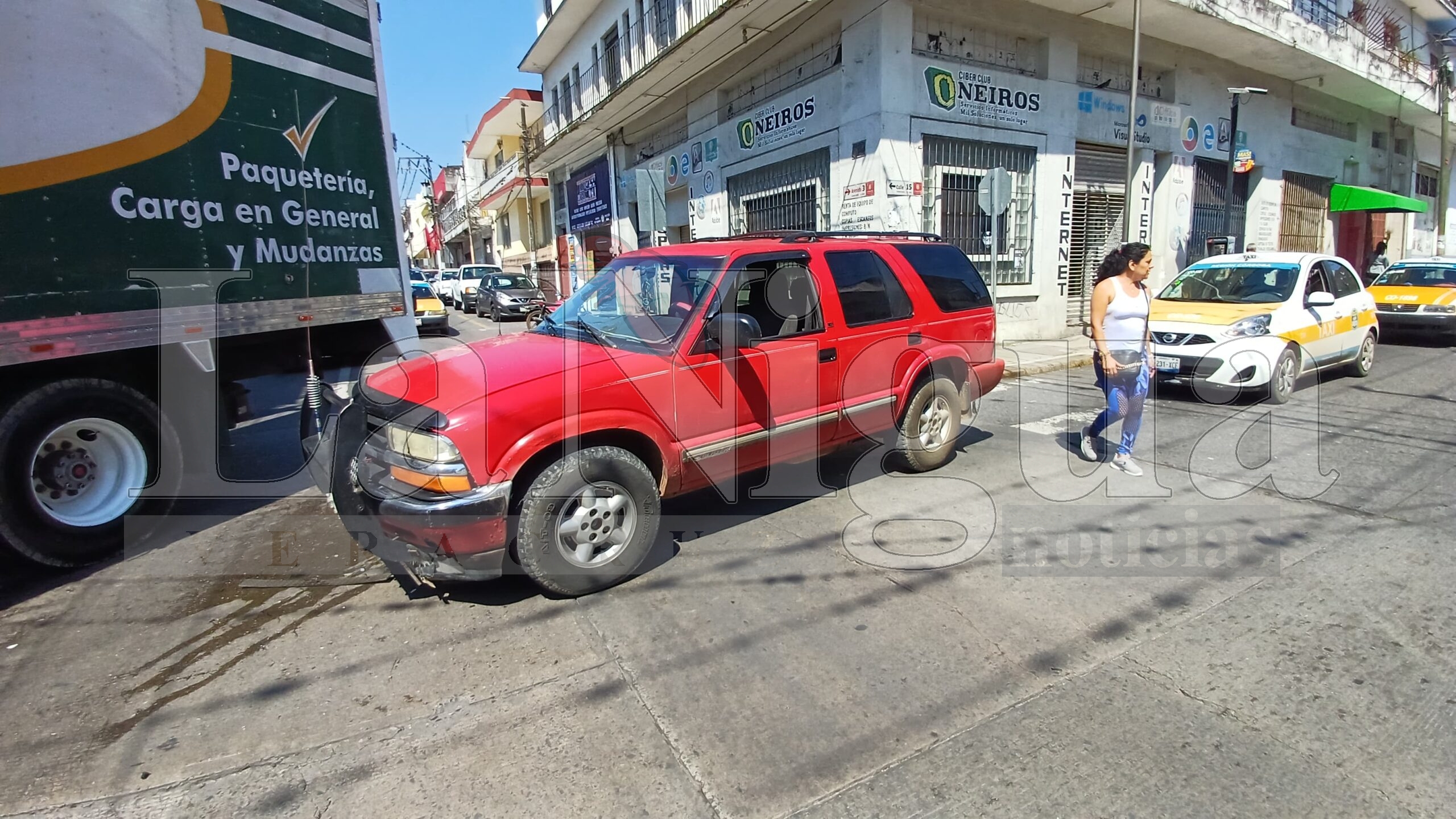 El percance se registró cuando una camioneta Honda, que circulaba sobre la avenida, y una Chevrolet roja, que transitaba por la calle 15, se impactaron al llegar al cruce, ya que ambos conductores aseguran haber pasado con luz verde.