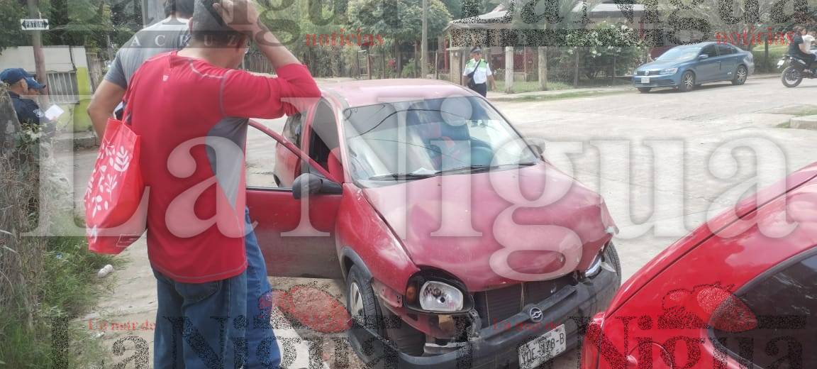 Las dos unidades fueron trasladadas a la Delegación de Transito del Estado en espera de las aseguradoras para cubrir los daños causados entre dichos autos compactos.