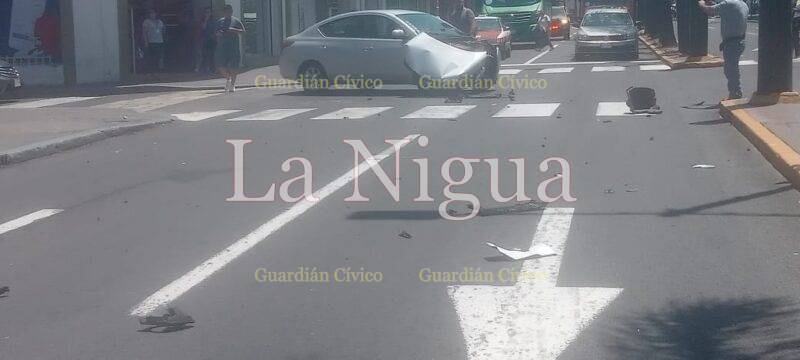 El accidente se registró cuando el coche color blanco de la marca Volkswagen Vento, conducido por una fémina se pasó el alto del crucero, impactando por el lado derecho al coche Nissan Versa color Gris el cual era conducido por una dama.