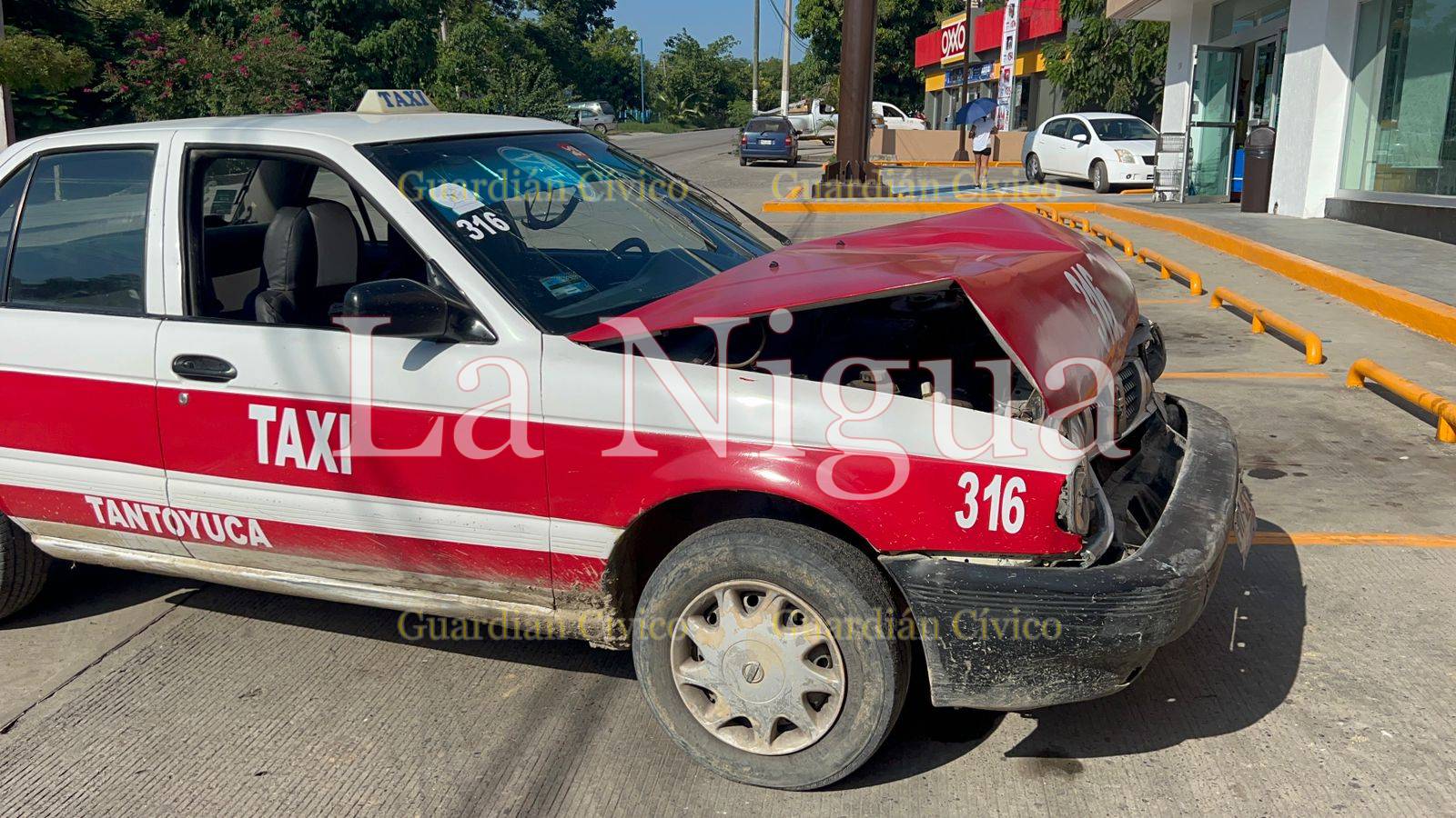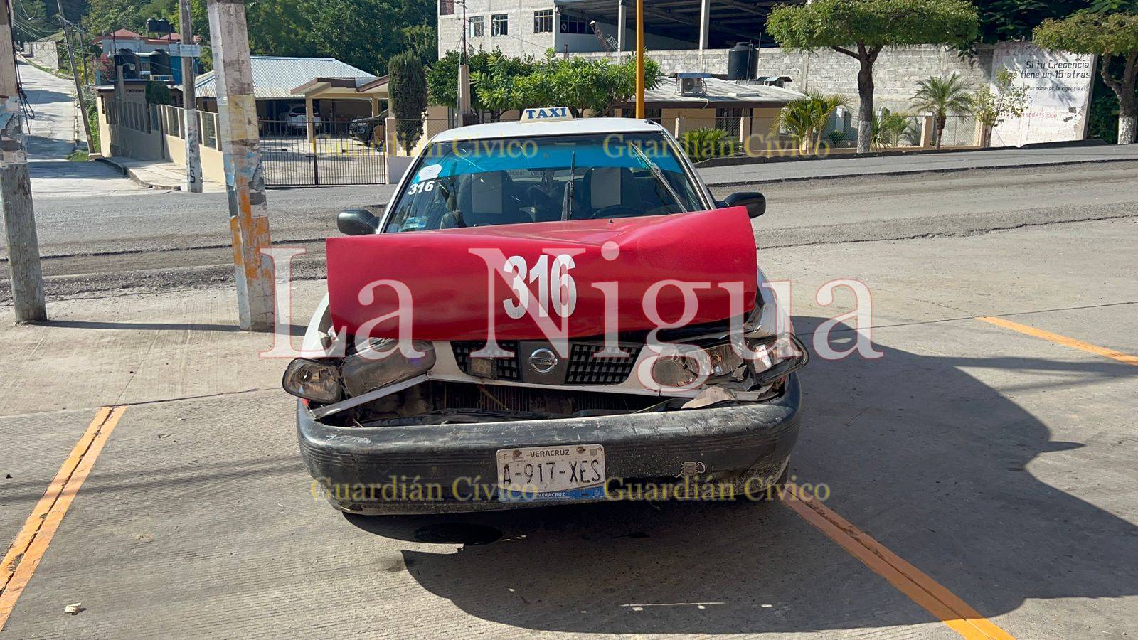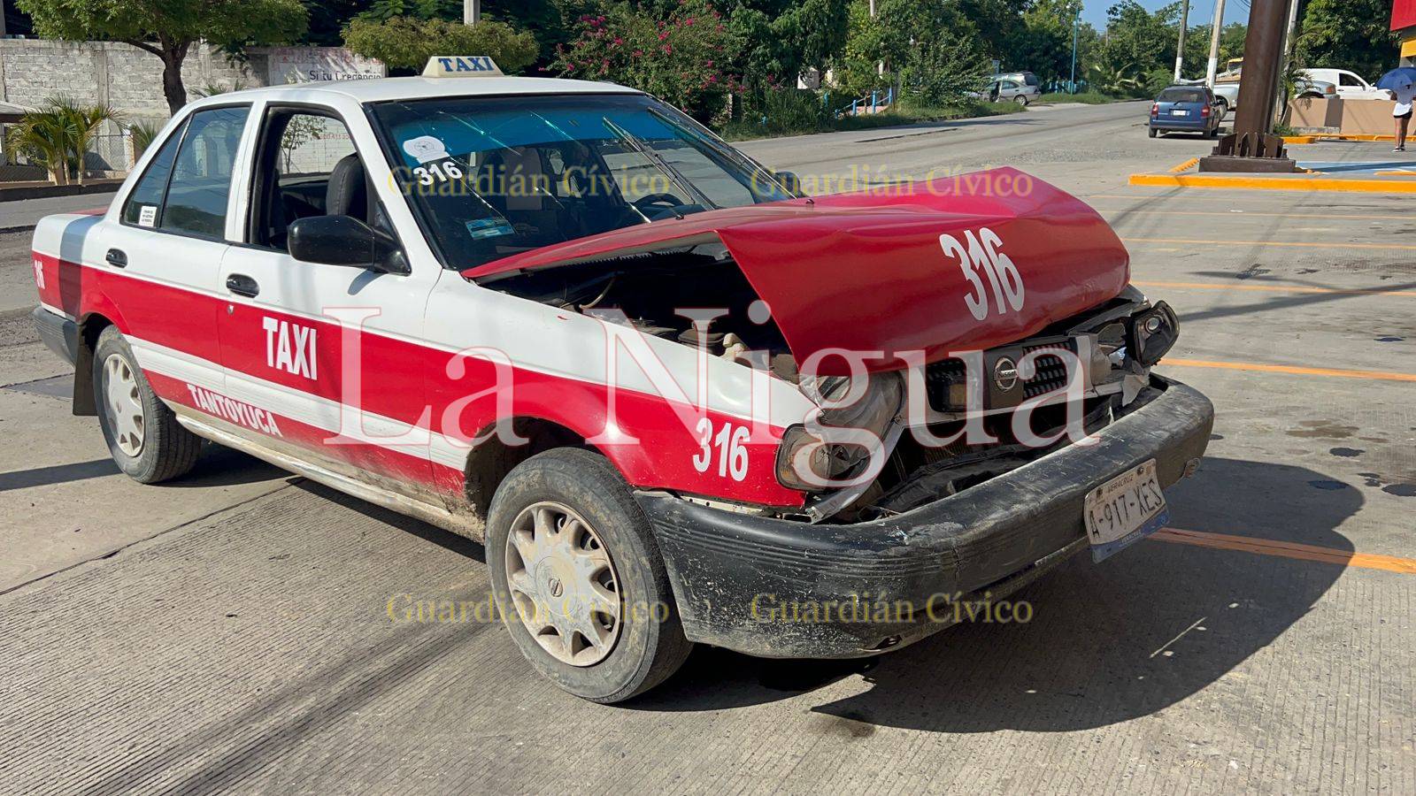 El taxista, responsable del percance, conducía un vehículo de la línea Nissan, Tsuru, con número de económico 316, el cual terminó con daños materiales considerables.