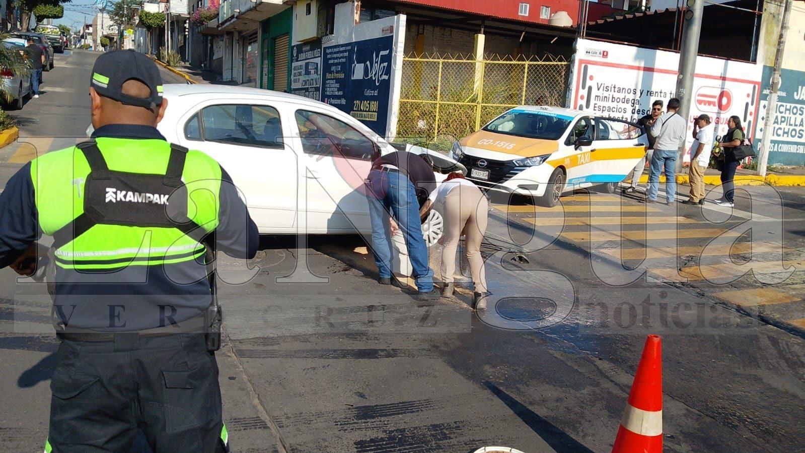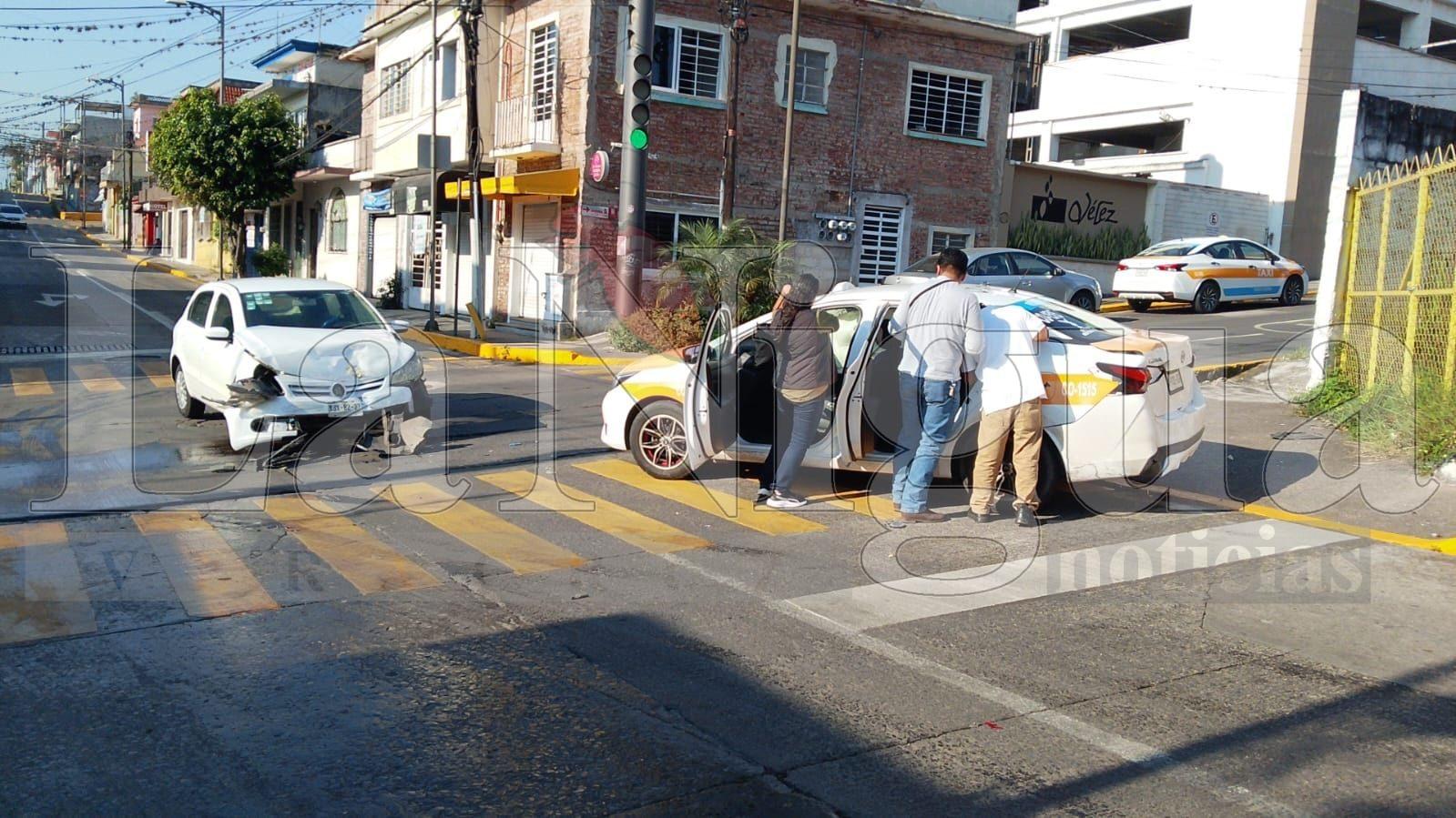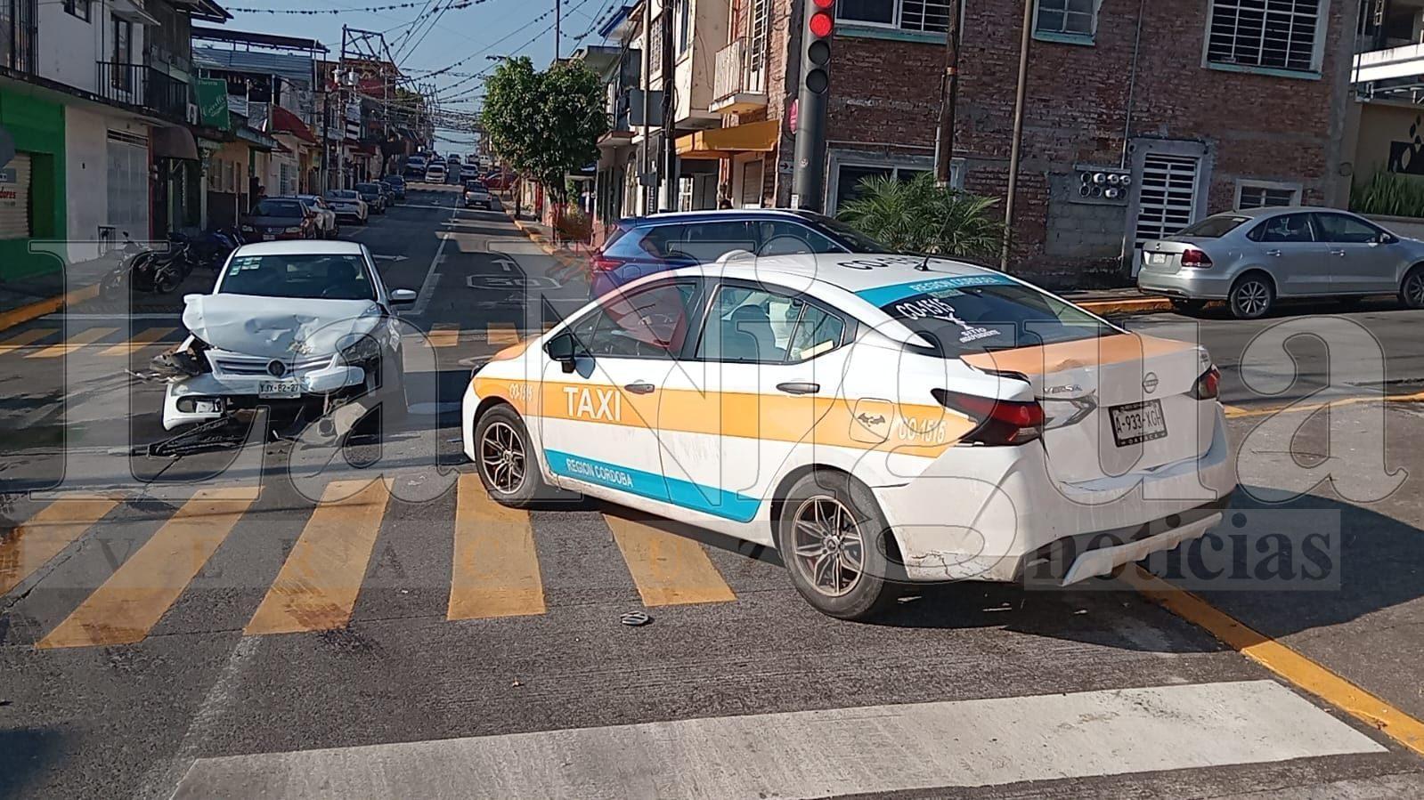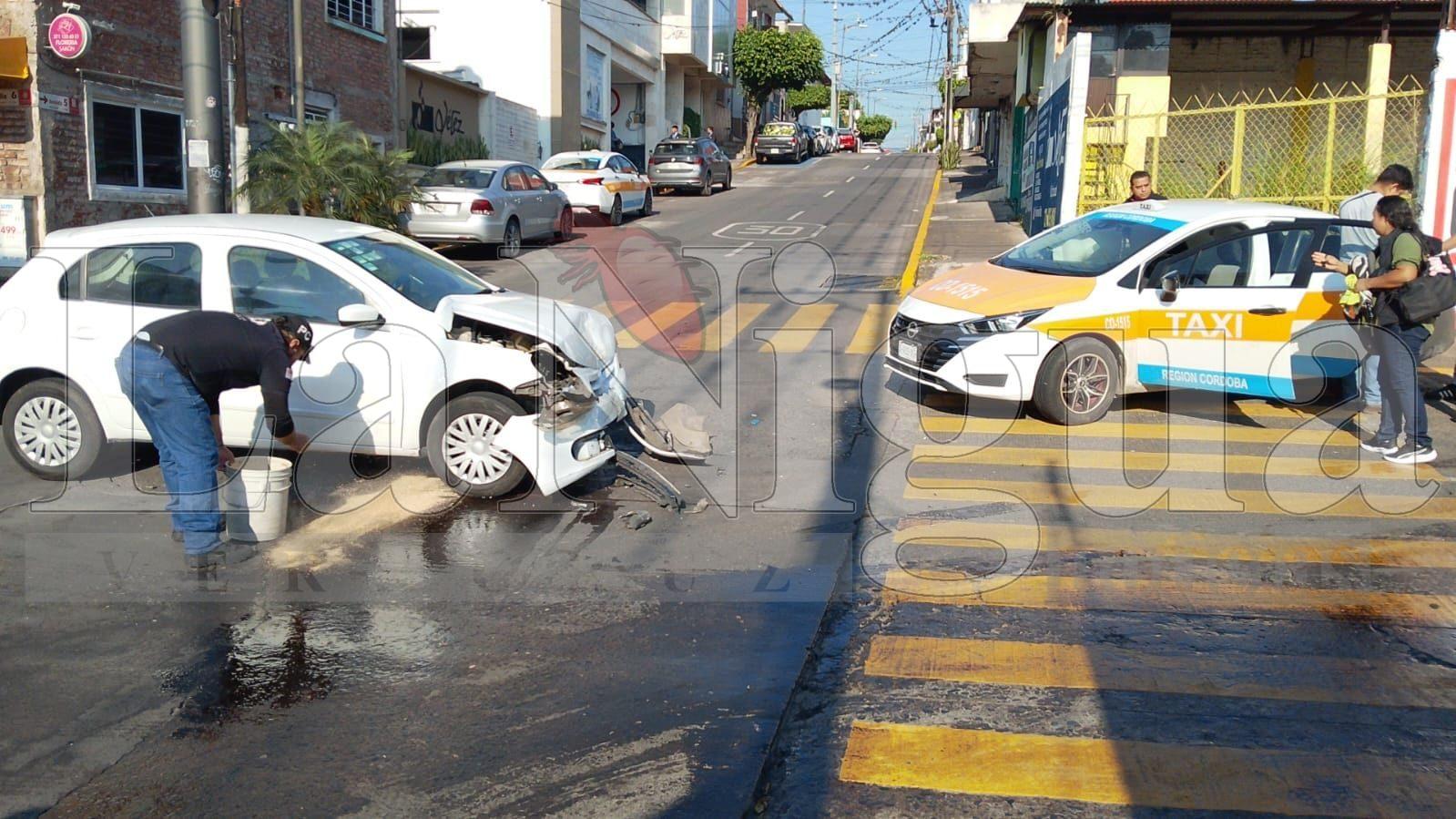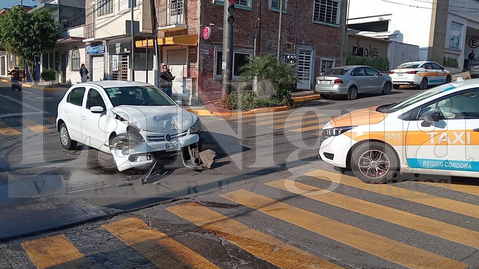 Córdoba, Ver.— Un accidente de tránsito se registró la mañana de este día en el cruce de la avenida 5 y calle 6, en la colonia Centro, donde un taxi y un vehículo particular se vieron involucrados en un choque que, de acuerdo con los primeros reportes, dejó únicamente daños materiales.
