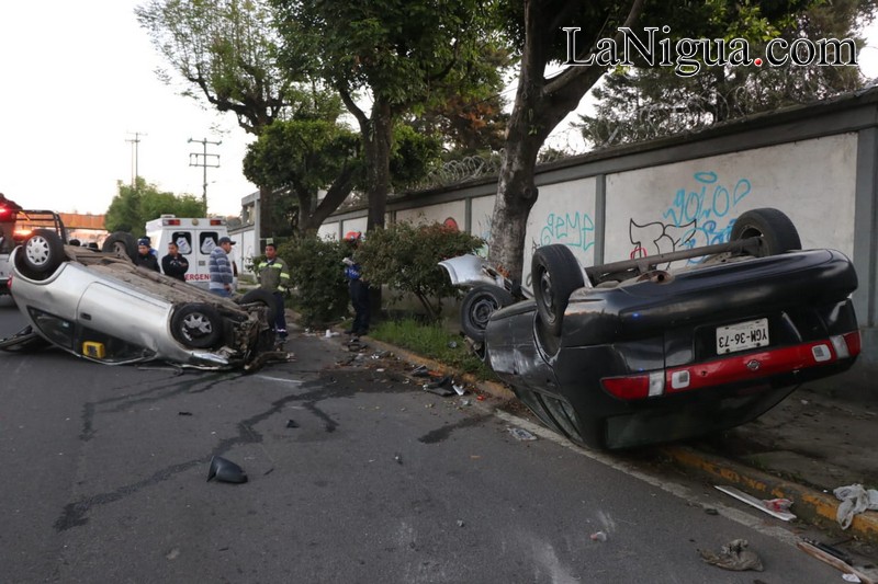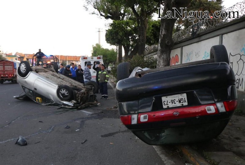 El accidente se registró un Nissan March y un Sentra chocaron y a causa del impacto volcaron.