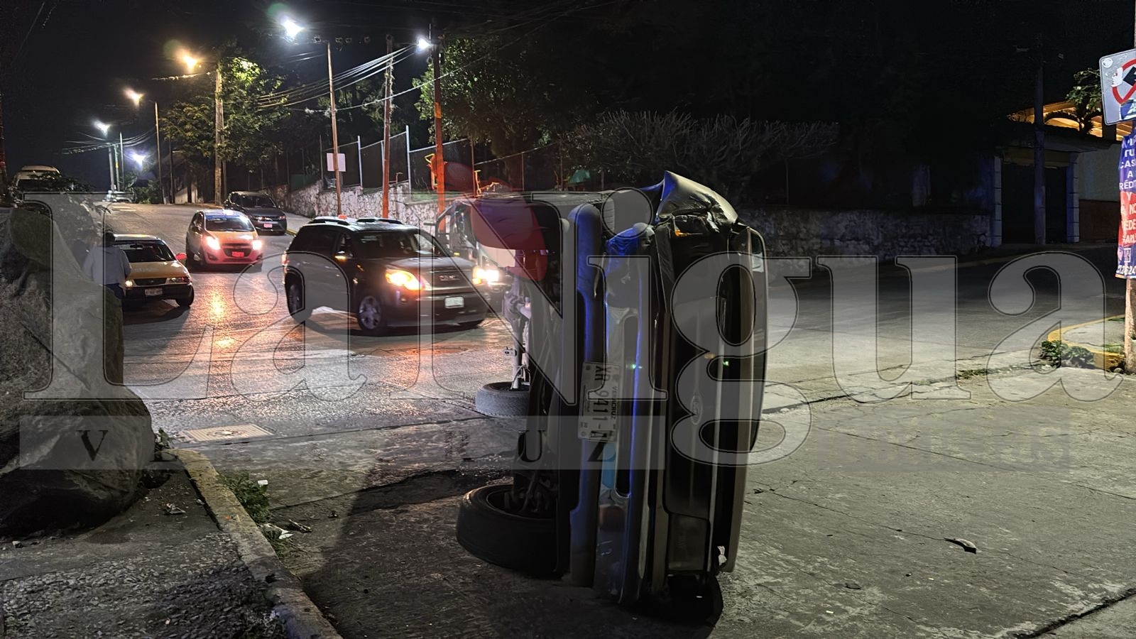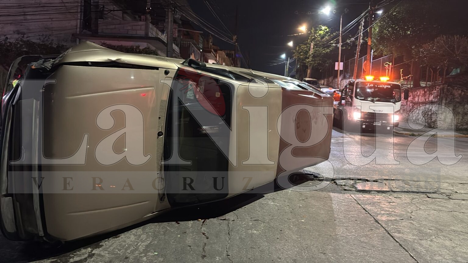 Córdoba, Ver.- Un choque y volcadura donde se vieron involucradas una camioneta Ford así como un taxi de esta ciudad, dejó como saldo dos personas lesionadas, movilización de los grupos de auxilio así como también de las autoridades de la Policía y Tránsito Municipal, tras quedar volcada la camioneta sobre la prolongación de la avenida 6 del Infonavit Arboledas.