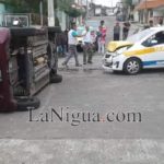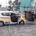 Por no respetar las señales de tránsito según testigos una camioneta Mirage color rojo con placas de circulación del estado conducido por la C. Palmira “M” que colisionó contra un vehículo Chevrolet Spark taxi, con placas de circulación del servicio público del estado conducido por Silvestre “M”, que colisionó por proyección contra un tercer automóvil marca Chevrolet Chevy con placas de circulación del estado, conducido por Pedro “M”.