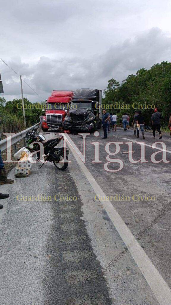Un fuerte accidente entre dos tractocamiones provocó el cierre de la carretera Cárdenas-Coatzacoalcos a la altura de la estación fitosanitaria de La Venta, Tabasco.