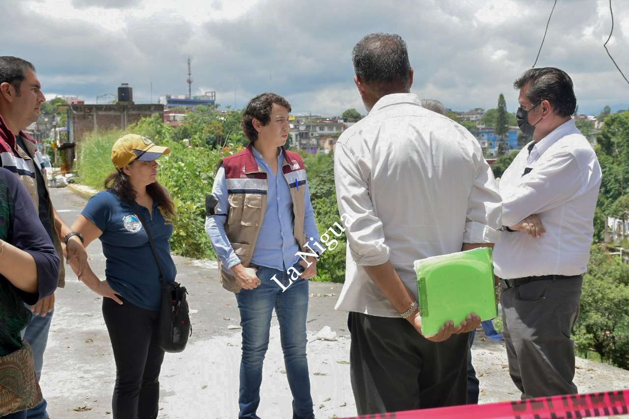 Asimismo, geólogos expertos de la Universidad Nacional Autónoma de México (UNAM) acompañados por los regidores Daniel Vázquez Hernández; Georgina Aguilar Sánchez; el Jefe de Caminos Municipales, Jorge Landero Medrano y el titular de la UMPC, recorrieron la zona afectada de la Ex Vía del Huatusquito entre avenidas 6 y retorno de la calle 7.
