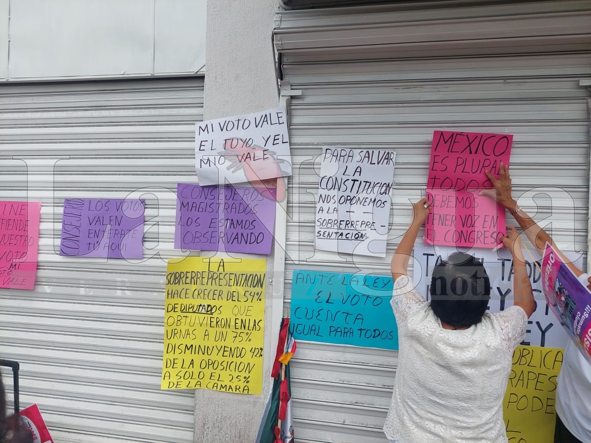 Durante la protesta, los manifestantes exigieron el respeto a los mandatos constitucionales que norman la representación política en el Congreso de la Unión. Señalaron que la asignación de diputados por representación proporcional debe realizarse conforme al porcentaje de votos efectivos que cada partido obtuvo. Citaron el artículo 49 constitucional, que establece la división del poder político de la federación en los poderes legislativo, ejecutivo y judicial, y subrayaron que estos no pueden concentrarse en una sola persona o corporación.