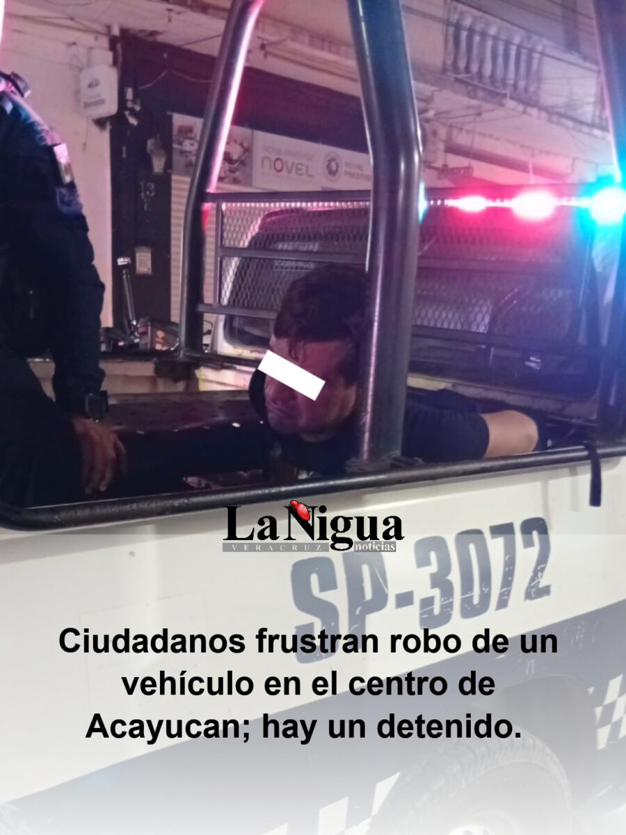 Acayucan, Veracruz. – Un hombre fue detenido por ciudadanos, con apoyo de elementos de la Policía Auxiliar, luego de que intentara robar un vehículo estacionado en la zona centro de Acayucan, al sur de Veracruz.