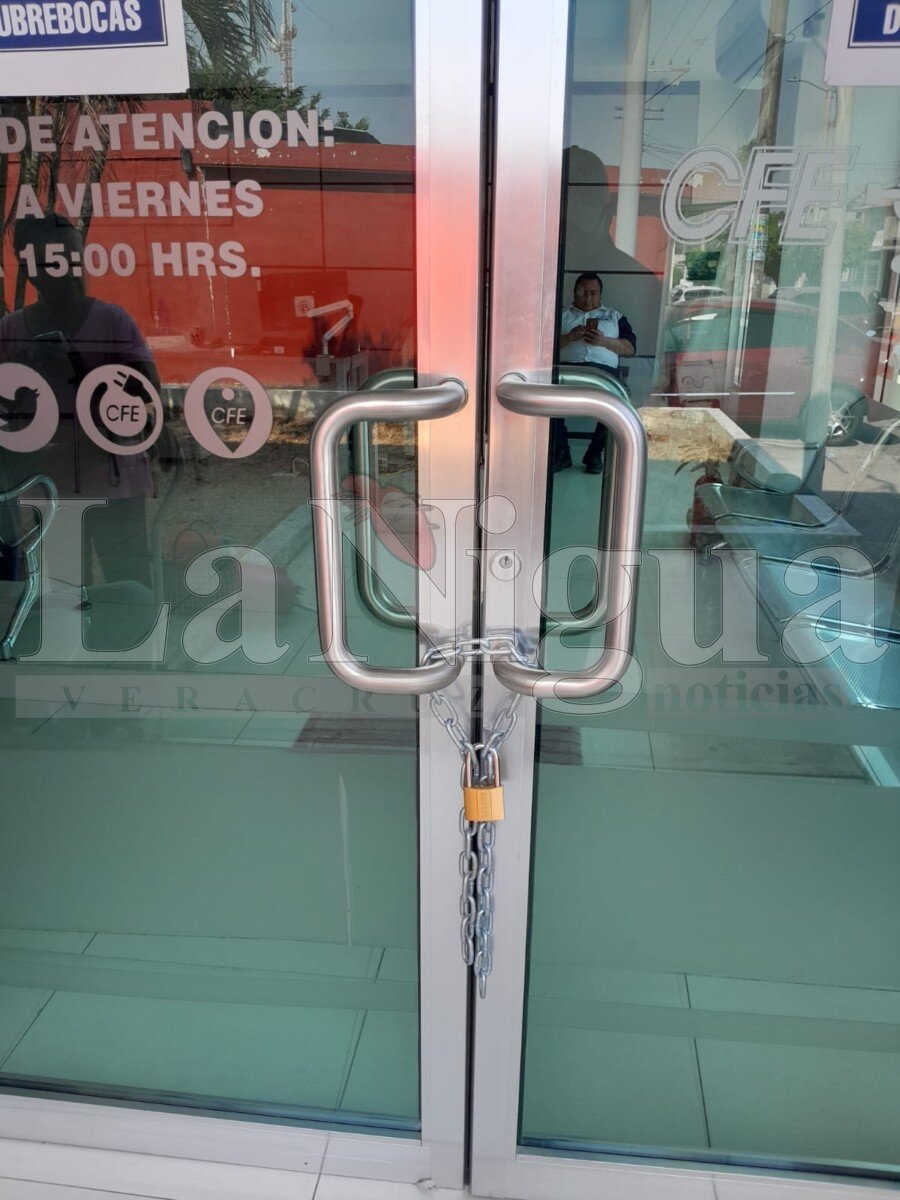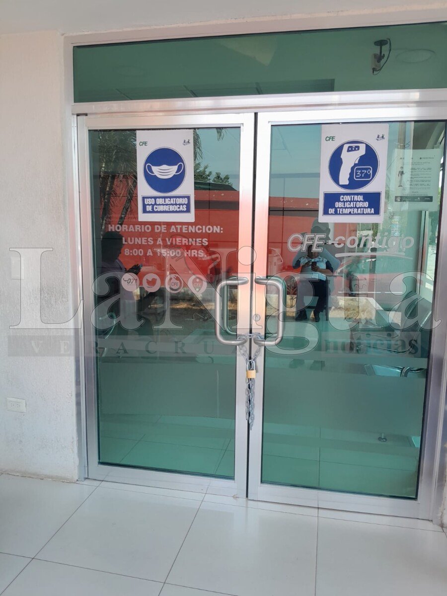 Un grupo de personas que representan a más de 50 familias de la calle Revolución, La Pera y el Callejón Guapaque, de la colonia J Mario Rosado, colocaron una cadena y un candado en la entrada de la puerta principal de la oficina de la Comisión Federal de Electricidad (CFE), como medida de protesta por no atender oficios donde piden nuevos transformadores y rehabilitación de la red eléctrica.