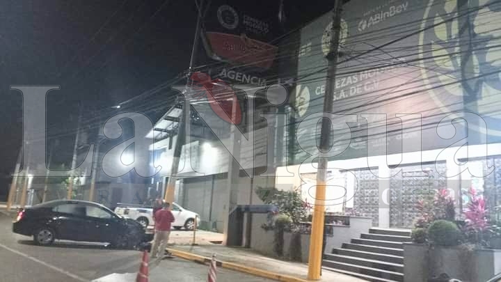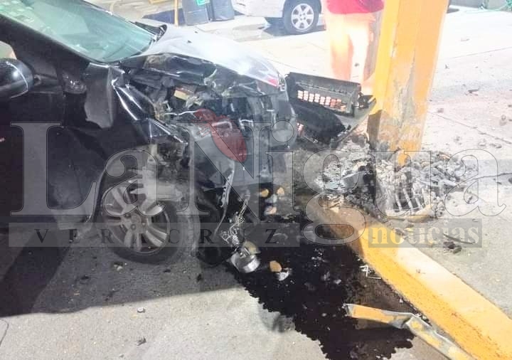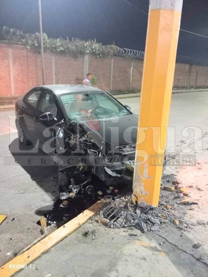 El accidente se registró durante la madrugada de este sábado, cuando el conductor cuya identidad no fue proporcionada, indican que perdió el control terminando accidentado al chocar contra el poste y dañar dicho automóvil.