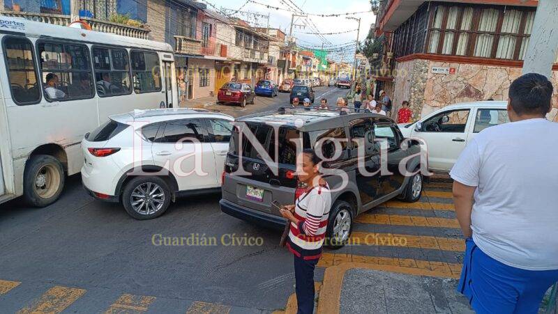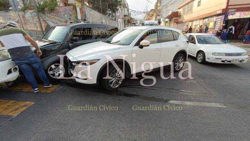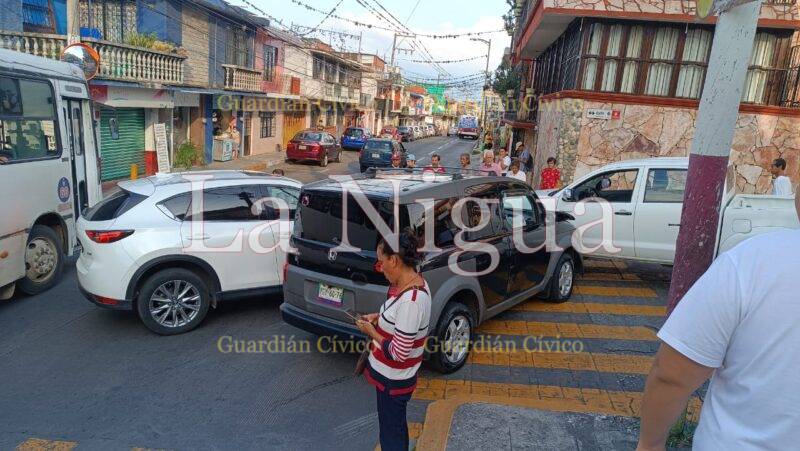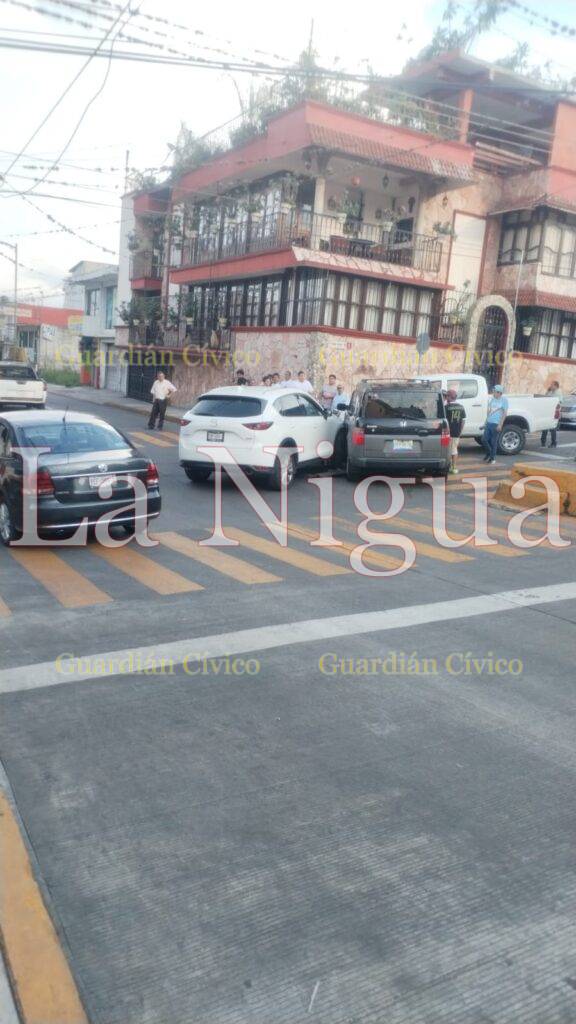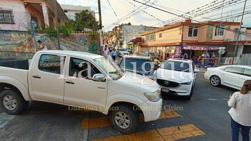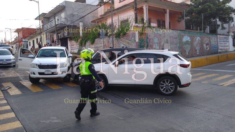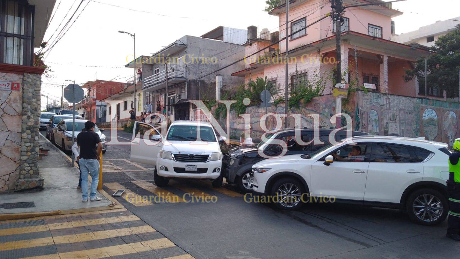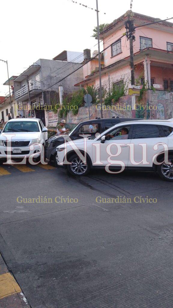Córdoba, Ver.- Un choque donde se vieron involucradas tres camionetas, dejó daños materiales de consideración, además de la movilización de autoridades de Tránsito Municipal debido a que la circulación está siendo afectada en estos momentos, debido a que uno de los conductores aparentemente al no respetar la preferencia vehicular, ocasionó el accidente en el cruce de la avenida 7 esquina de la calle 6 en la colonia Centro.