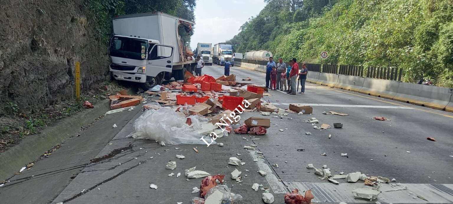 El percance sucedió la tarde del miércoles, cuando transitaba sobre la autopista un Tracto camión International color blanco con remolque tipo redilas, cuyo operador no proporcionó sus datos.