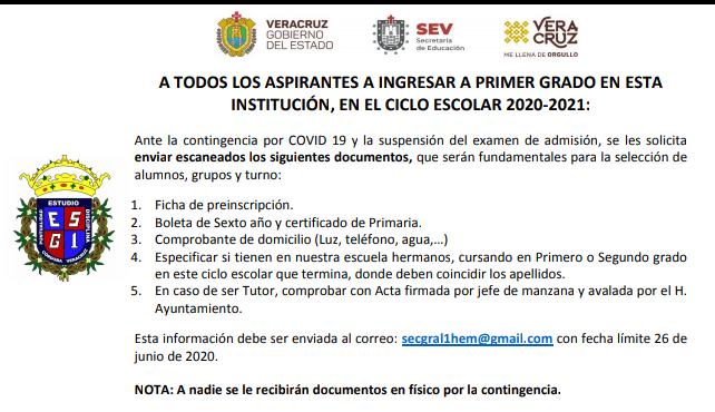 Con ello se elimina el examen de admisión pues se canceló debido a a la contigencia de Covid 19.