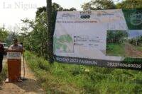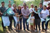 | Presidente municipal Gerardo Rosales Victoria acompañado de su esposa la presidenta del DIF y del cuerpo edilicio dieron el banderazo de la primera obra en Santa Martina.