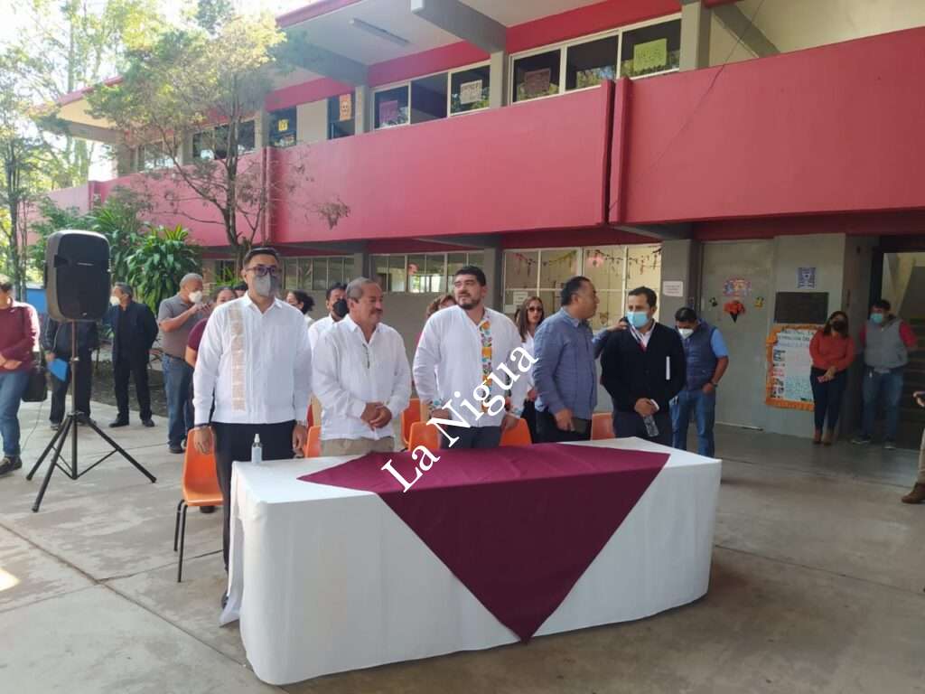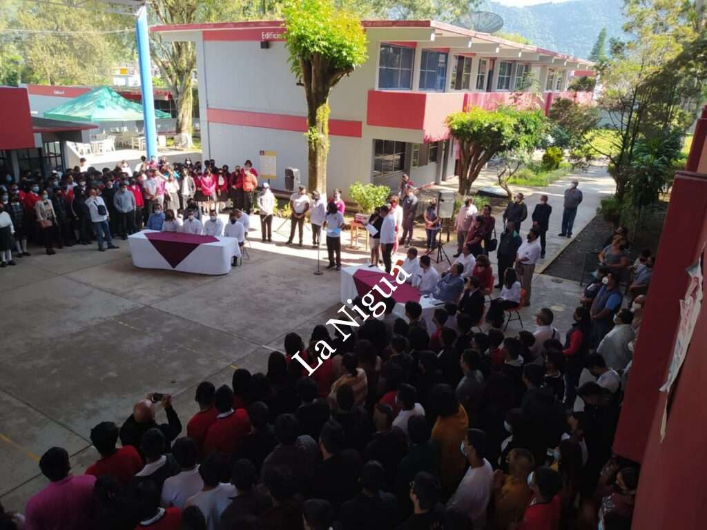 Río Blanco, Ver.- La mañana de este lunes, Zenyazen Escobar García Secretario de Educación de Veracruz acudió a temprana hora al Centro de Estudios Tecnológicos Industriales y de Servicios 146 (CETIS), para participar en el homenaje a la bandera y el arranque del operativo mochila.