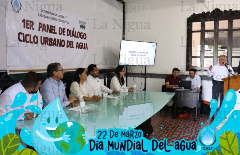 Fortín.- Con el desarrollo del panel de diálogo, el Ciclo Urbano de agua 2023, la Comisión de Agua y Saneamiento de Fortín dio por concluidas la semana de actividades en el marco del Día Mundial del agua, donde participaron el ingeniero Efraín Deschamps Vergara, Director de Agua Potable, Drenaje y Saneamiento de la Comisión Nacional del Agua y la ingeniero Raquel Gasperin Sánchez, Jefa de oficina de Saneamiento de la Comisión de agua del Estado de Veracruz.