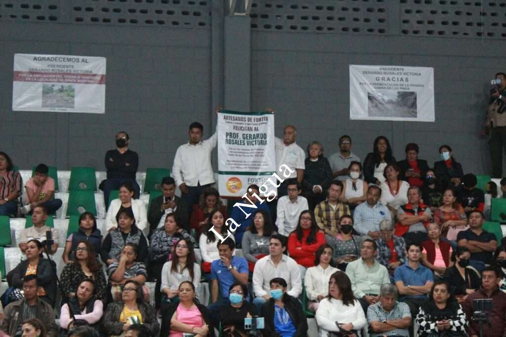22 de diciembre de 2022, Fortín, Ver. – Ante cientos de ciudadanos y ciudadanas, el presidente municipal Gerardo Rosales Victoria y la presidenta del DIF municipal, señora Olga Juárez Rodríguez rindieron su primer informe de gobierno en el que demostraron grandes logros a base de la austeridad, optimización de recursos públicos y principalmente la Transformación de Fortín mediante un nuevo modelo de gobierno con trato directo y equidad de género.
