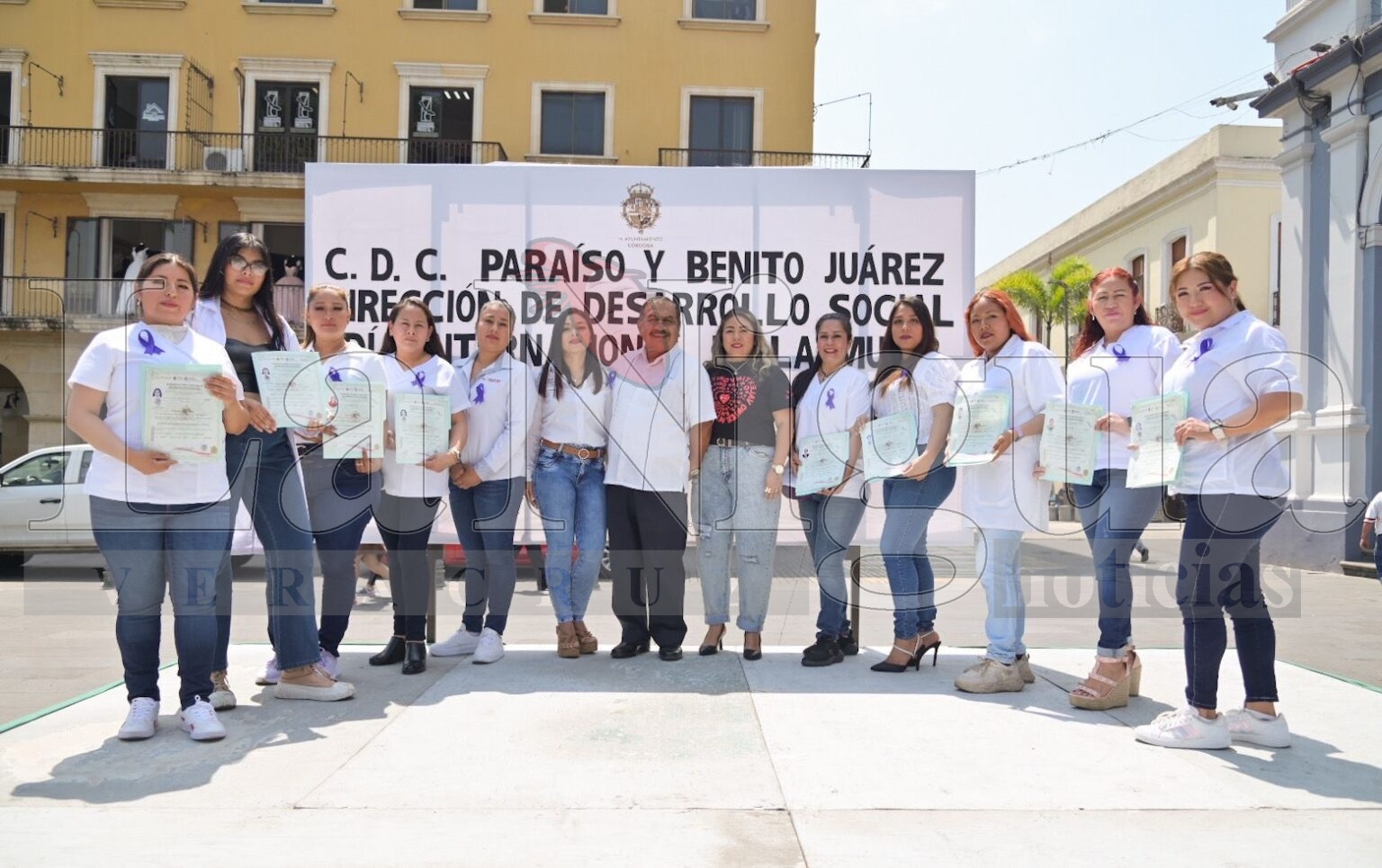 En el evento, las autoridades municipales y las encargadas de los centros de desarrollo comunitario Benito Juárez y Paraíso, Verónica Moreno Trujillo y Judith Rojas Orduña, respectivamente, hicieron una entrega especial a las alumnas que culminaron satisfactoriamente los cursos del Instituto de Capacitación para el trabajo del estado de Veracruz en corte y peinado del cabello y cuidados personales. Además de los certificados oficiales avalados por la SEP que acreditan la especialidad de cosmetología en cuidados faciales, spa de manos y pies, y cuidados corporales.