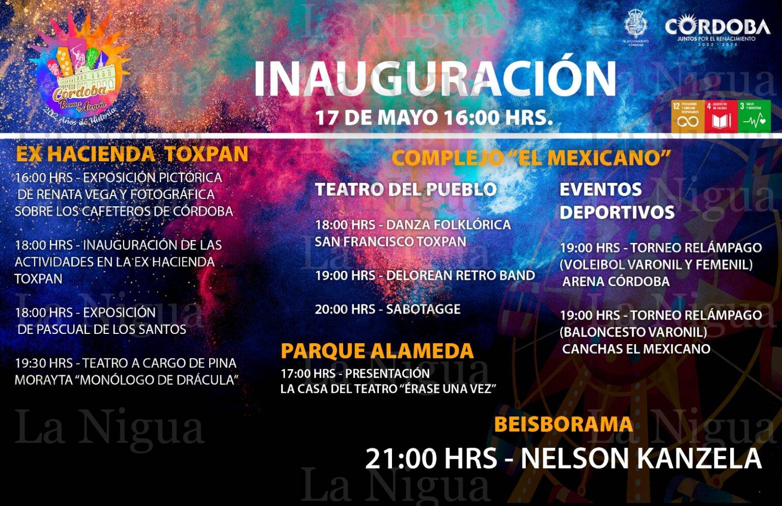 Córdoba, Ver., (16 de mayo del 2023). – Con una cartelera cultural, deportiva y de entretenimiento, este miércoles 17 de mayo se inaugura la Feria “Renace la Alegría 2023”, la cual se desarrollará en tres sedes: El Mexicano, Ex Hacienda Toxpan y Alameda Rafael Murillo Vidal, con la presentación de diversos artistas locales, Nelson Kanzela y Junior Klan.
