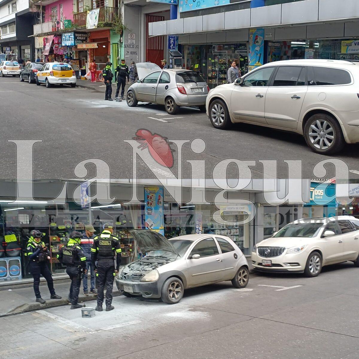 De acuerdo con los primeros reportes, el siniestro fue provocado por un corto circuito en el sistema eléctrico del automóvil, lo que generó humo y pequeñas llamas en la parte frontal de la unidad.