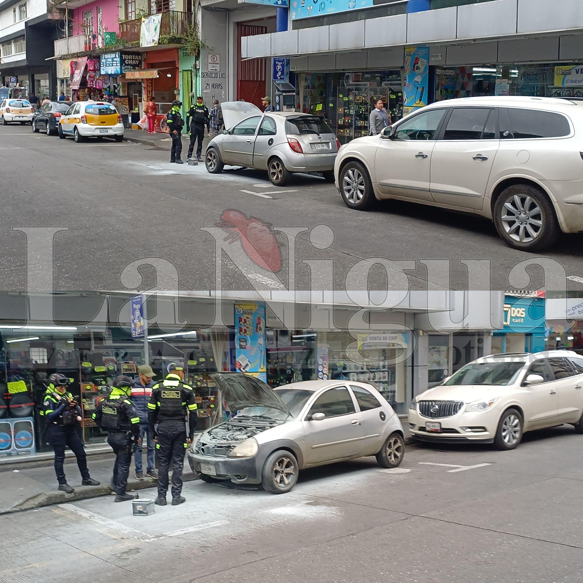 De acuerdo con los primeros reportes, el siniestro fue provocado por un corto circuito en el sistema eléctrico del automóvil, lo que generó humo y pequeñas llamas en la parte frontal de la unidad.