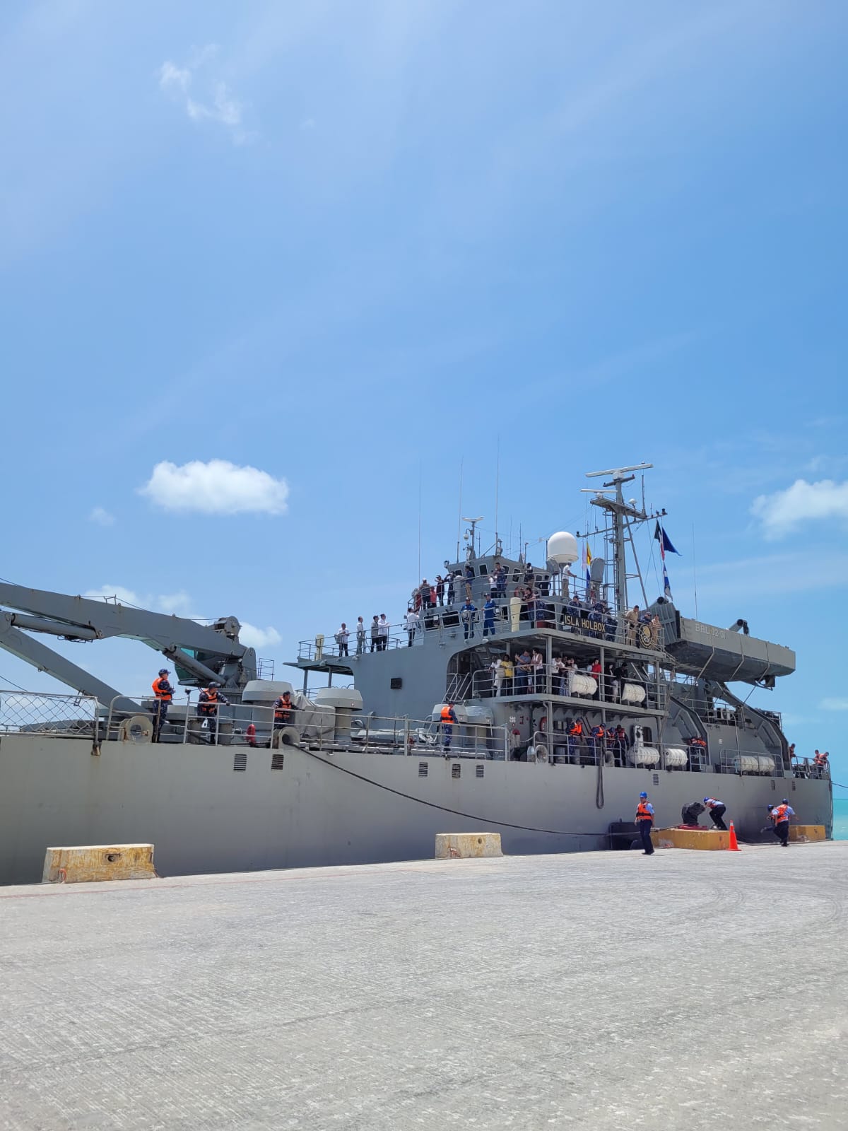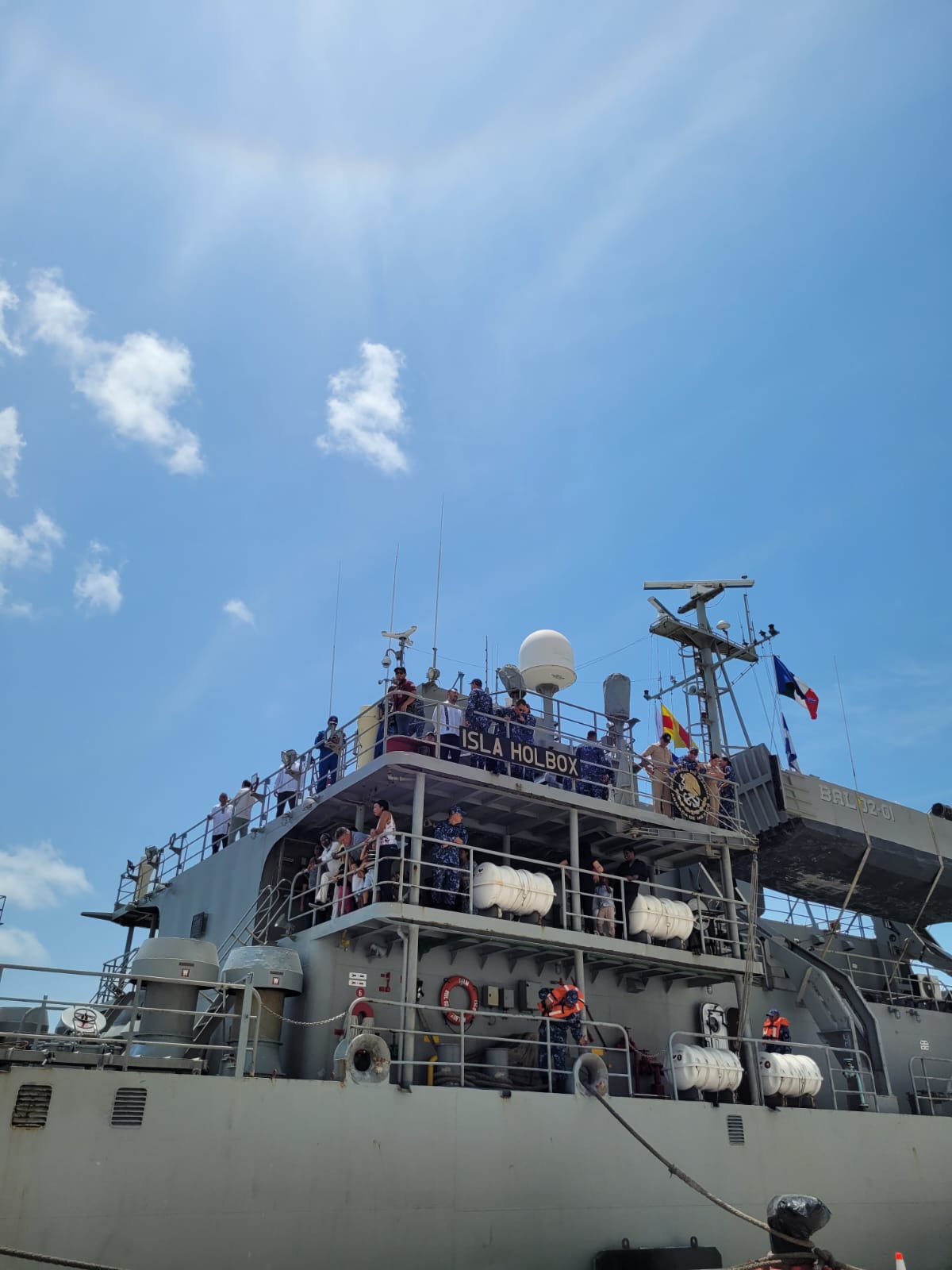 Las y los 34 connacionales navegaron durante cinco días a bordo del buque ARM Isla Holbox (BAL-02), luego de salir vía aérea de Puerto Príncipe, ante la imposibilidad de dejar la capital haitiana por cualquier otro medio.