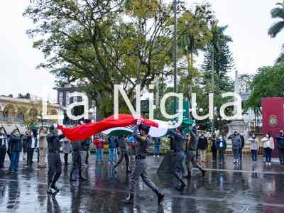 La Bandera mexicana fue escoltada por cadetes del Pentatlón Universitario Militarizado, bajo el mando del comandante Raúl Rojas, quienes la entregaron al presidente municipal, Juan Martínez Flores para que la colocara en el asta.