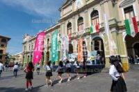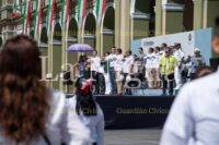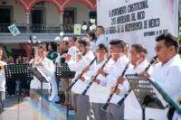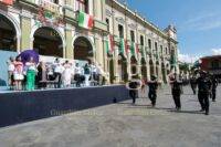 El alumno Eduardo Espinosa González dirigió el juramento a la bandera, para dar paso a entonar las notas del glorioso Himno Nacional y el de Veracruz, armonizadas por la Banda Municipal de Música.