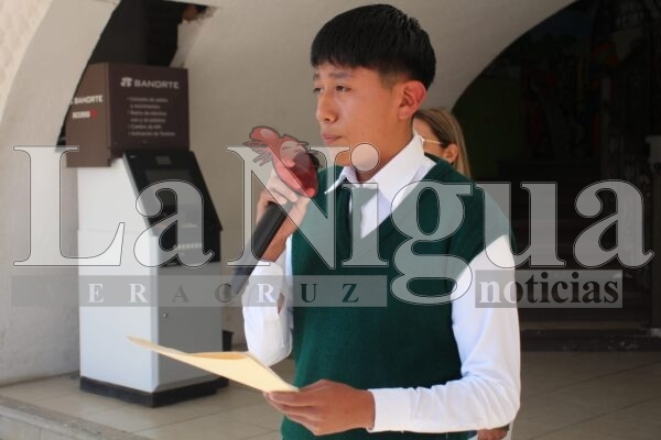 Durante la ceremonia, Mateo Efraín Modesto Ventura, estudiante de la telesecundaria Alfredo V. Bonfil, compartió un poema de su autoría dedicado a Chocamán, destacando el amor y orgullo por su municipio.