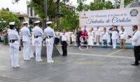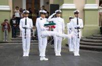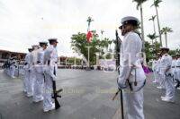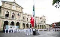 En esta ocasión, el Lábaro Patrio fue arropado por la escolta de la Heroica Escuela Naval Militar, dando paso al izamiento de la Bandera a cargo del Presidente Municipal, Juan Martínez Flores.