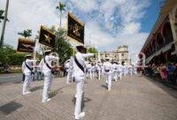 Finalmente, se llevó a cabo un recorrido por las principales calles de la ciudad por la Heroica Escuela Naval, iniciando por elementos de Tránsito Municipal para dar paso a los Cadetes de la Escuela Naval Militar integrados por la escolta, banda de guerra, la sección de Cadetes, vehículos artillados de personal de Infantería de Marina, la Compañia de Defensas Rurales, la Unidad Municipal de Protección Civil, Bomberos y Cruz Roja Mexicana.