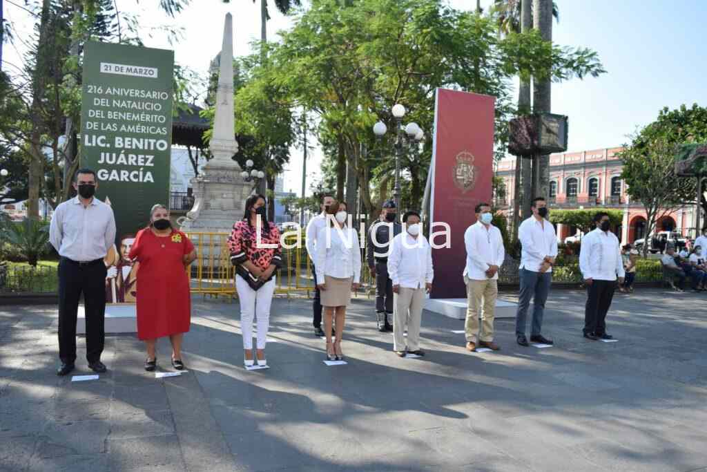 Con ello, se procedió a la colocación de una ofrenda floral en el busto de Benito Juárez ubicado en las escalinatas del Palacio Municipal y, por último, las autoridades municipales se trasladaron al parque Benito Juárez para la colocación de una ofrenda floral en compañía del cuerpo edilicio y los integrantes del 8vo Distrito Masónico.