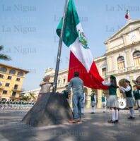 La encargada de realizar el izamiento de la Bandera, fue la regidora tercera, Georgina Aguilar Sánchez, quien recibió el lábaro patrio que fue escoltado por alumnas de la Telesecundaria Vicente Guerrero. Posteriormente, el alumno Eduardo Espinoza Morales dijo el juramento.