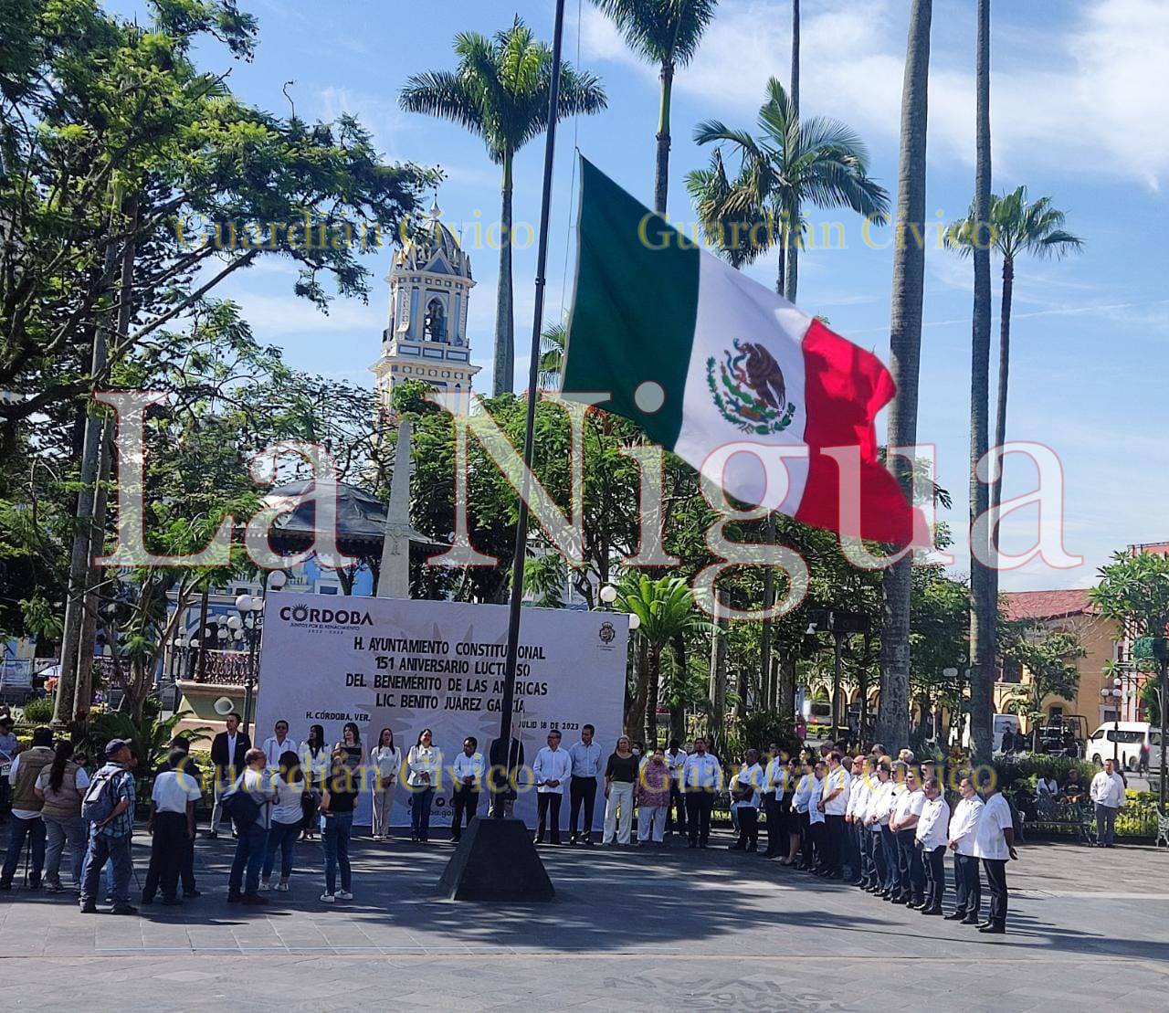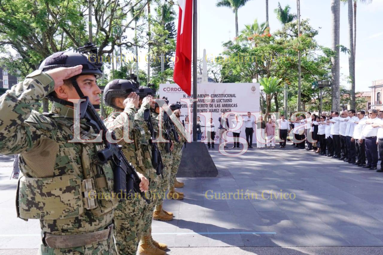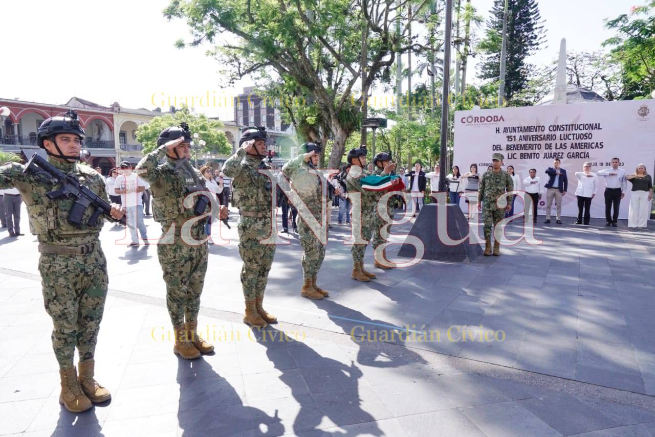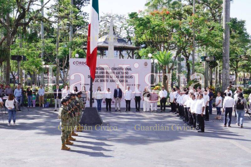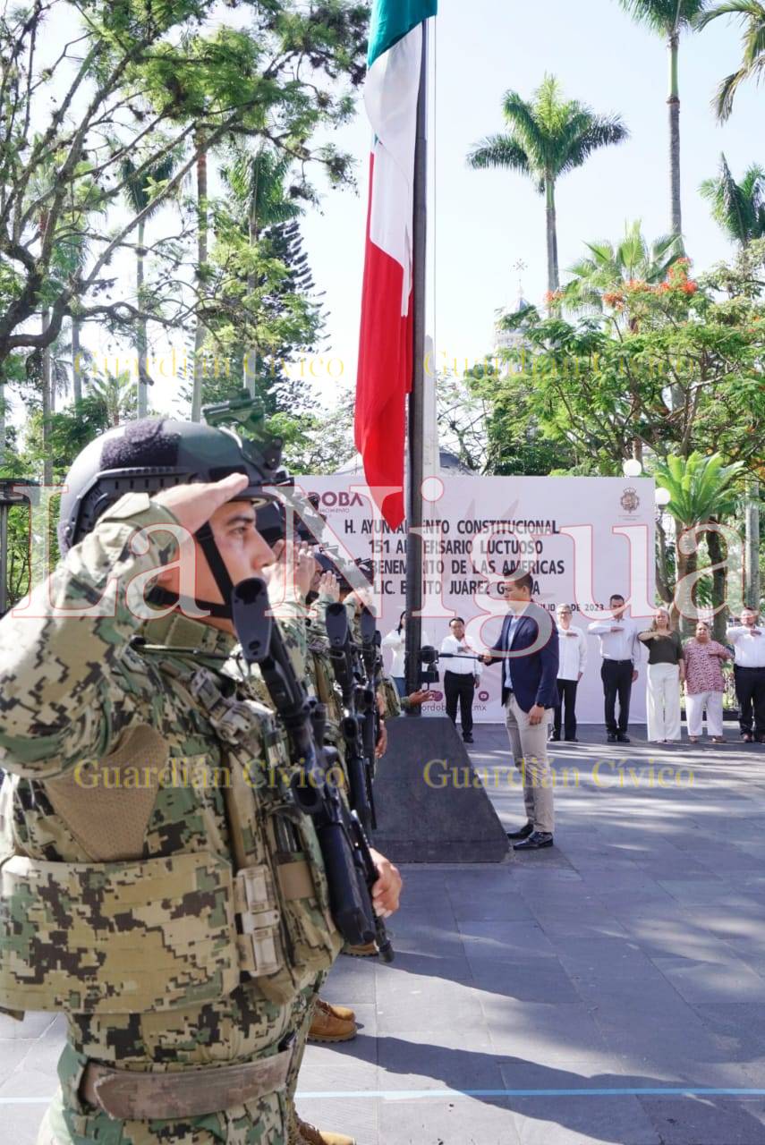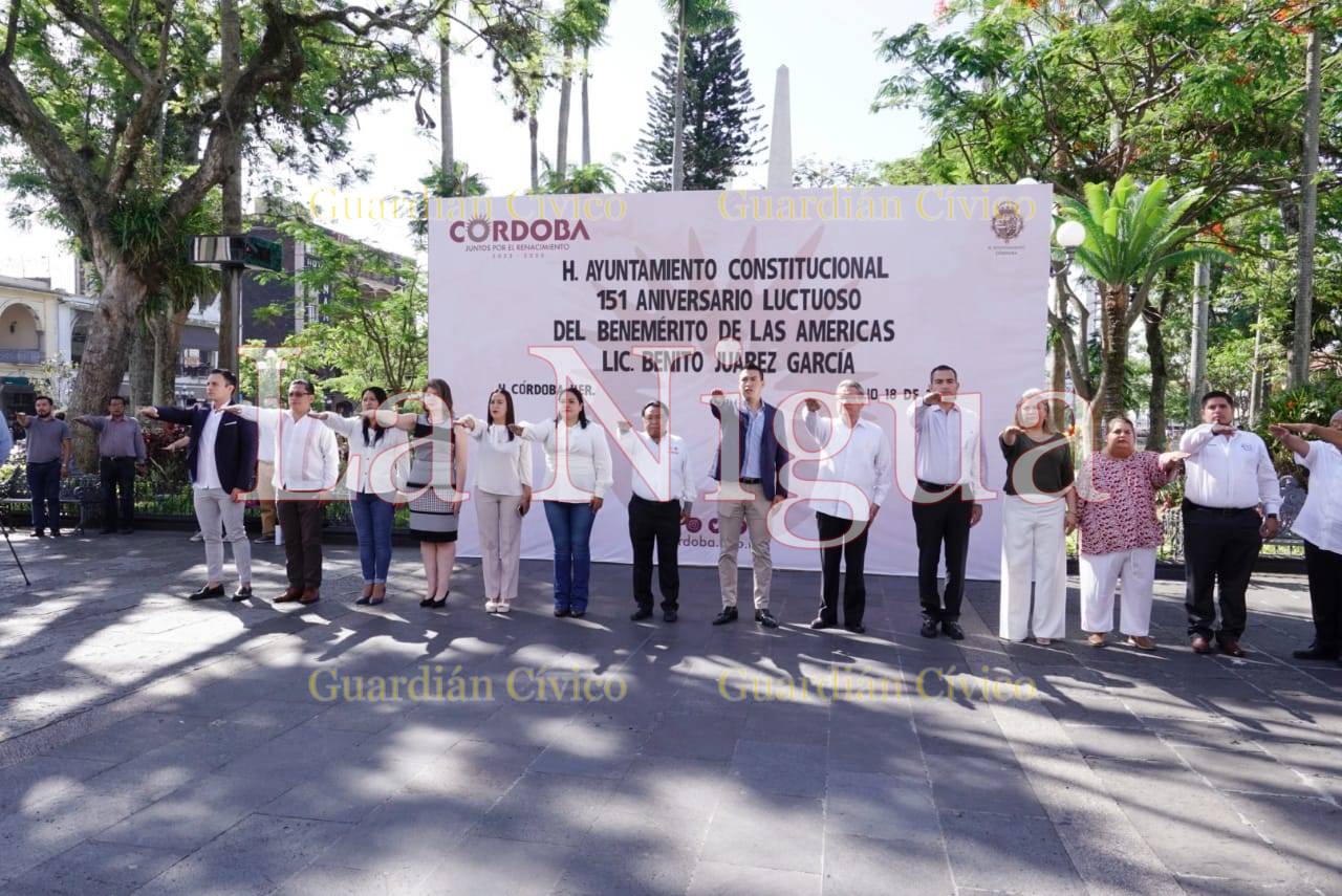 Córdoba, Ver., (18 de julio de 2023). – Con un acto cívico y colocación de ofrenda floral, autoridades municipales, encabezadas por el Presidente, Juan Martínez Flores y la Masonería Regional 24 de Agosto conmemoraron el 151 Aniversario Luctuoso del Benemérito de las América, Benito Pablo Juárez García.