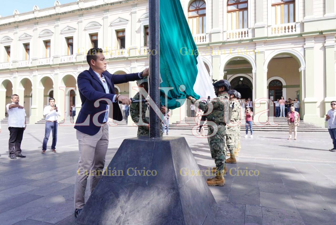 En esta ocasión, el Lábaro Patrio fue escoltado por elementos de la Marina para ser izada a media asta por el Regidor, Jonathan Francisco Rosas Blanco, posteriormente, el juramento estuvo a cargo de Luis Germán García Hernández.