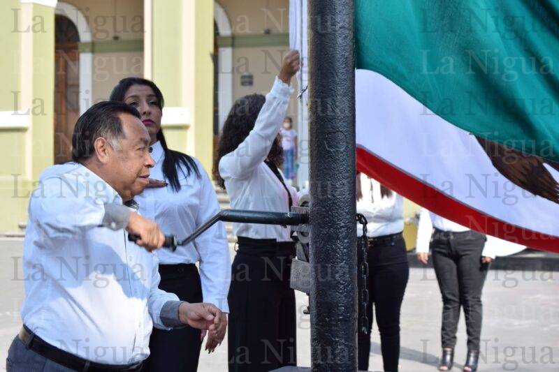 Para la conmemoración de este día, estuvieron presentes representantes y líderes de las organizaciones: CROC, CROM, CTM Y UMAC y fue la primera autoridad, quien izó el Lábaro Patrio y posteriormente, Isabel Yadira Varillas Napoleón se encargó del juramento a la Bandera.