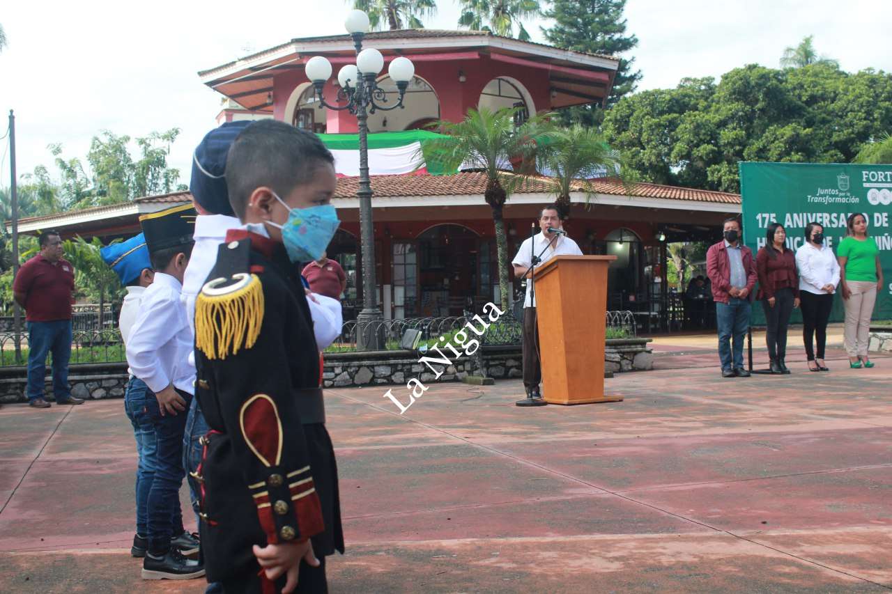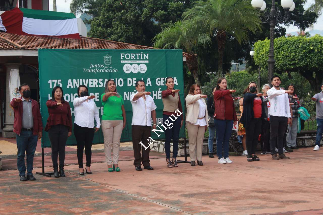 Fortín, Ver. – Autoridades municipales encabezadas por el presidente municipal Gerardo Rosales Victoria realizaron un acto cívico en la explanada del parque Lázaro Cárdenas para conmemorar el 175 aniversario de la Gesta Heroica en el castillo de Chapultepec.