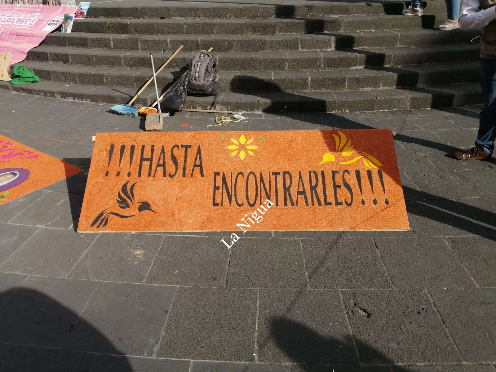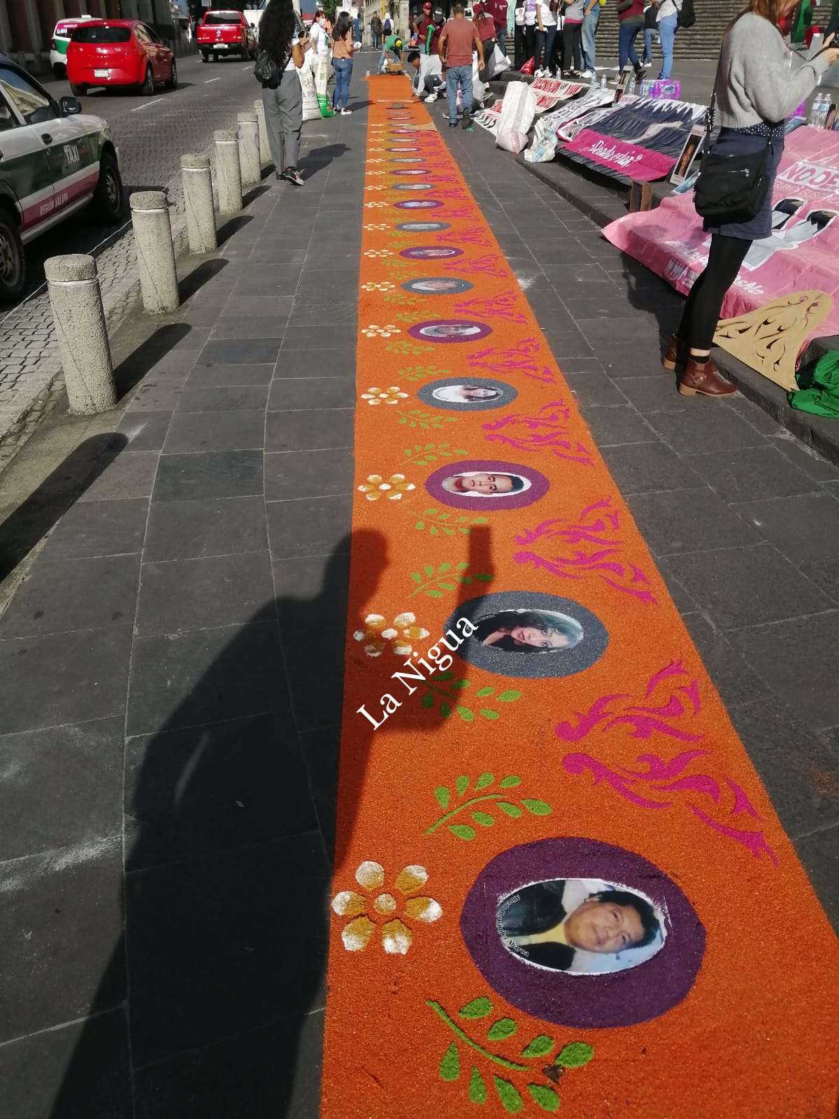 Lamentablemente esta señora señaló, el secuestraron de otro hijo el 27 de febrero 2012 y lo localiza sin vida en el municipio de Cosautlán, los familiares, en la Plaza Lerdo colocaron varias lonas con fotografías de sus desaparecidos, así también realizaron un tapete de aserrín en donde colocaron fotografías de los desaparecidos.