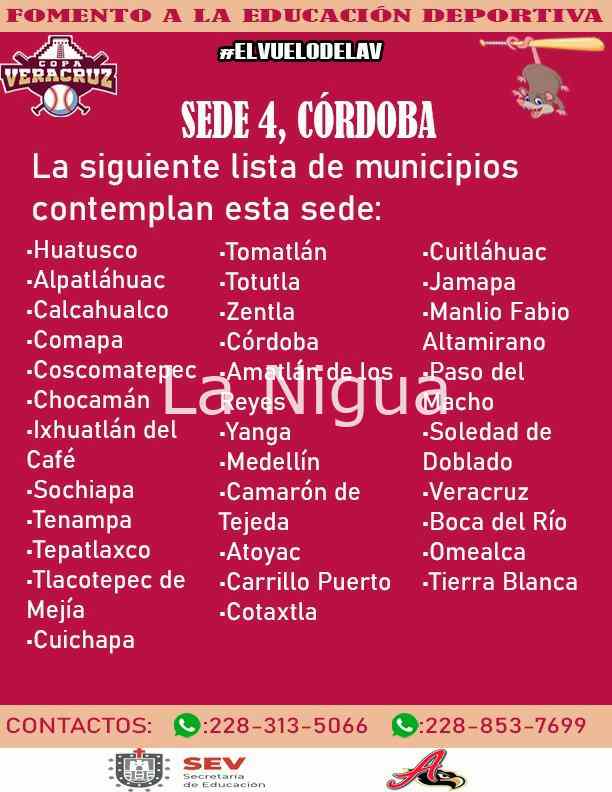 En el estado habrá seis sedes y una será Córdoba, en el estadio Beisborama los días 25, 26 y 27 de marzo.
