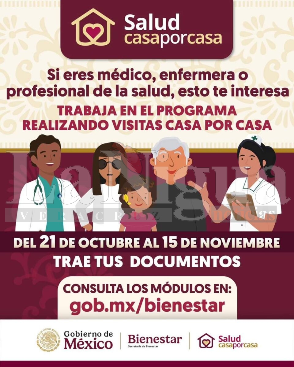 La recepción de documentos para solicitantes, se realizará en los Módulos de Bienestar de cada municipio, Camarón, Soledad de Doblado, Paso del Macho y Paso de Ovejas, que son comprobante de haber cursado la carrera de medicina, enfermería, Curp, comprobante de domicilio, llenar formato que le darán en el módulo.