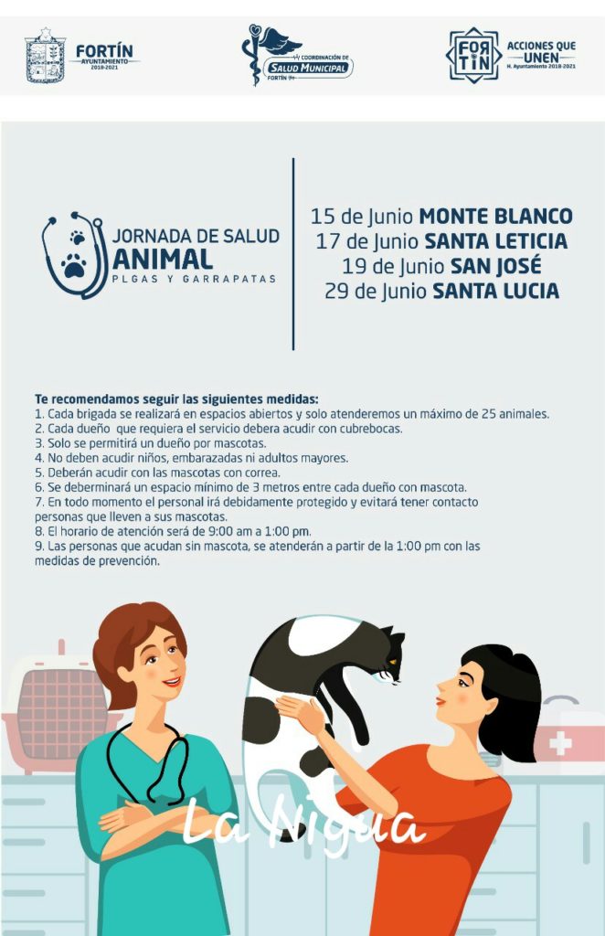 Fortín Ver.- Por indicaciones del Presidente Municipal Toño Mansur, el Ayuntamiento de Fortín a través de la Coordinación de Salud Municipal realizará un ciclo más de las ya exitosas “Jornadas de Salud Animal “ a realizarse durante el mes de junio dentro del municipio.
