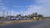 A través de imágenes que se subieron a las redes sociales, se puede observar como una retroexcavadora golpea duramente contra la torre que sostiene diversas cámaras, entre ellas giratorias de 360 grados.