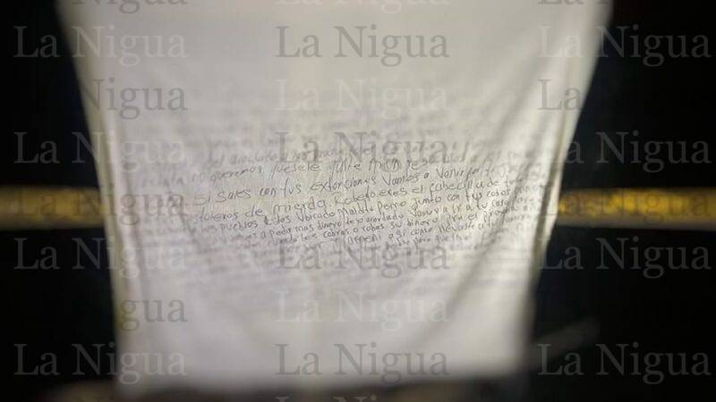 Con tinta negra se podía leer amenazas de parte de un grupo criminal para ciertos sujetos de las comunidades antes mencionadas.