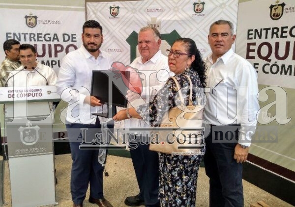 Edel Humberto Álvarez Peña estuvo recorriendo instalaciones de juzgados en Coatzacoalcos, donde además entregó 70 computadoras para mejorar la calidad del trabajo de secretarios y jueces.