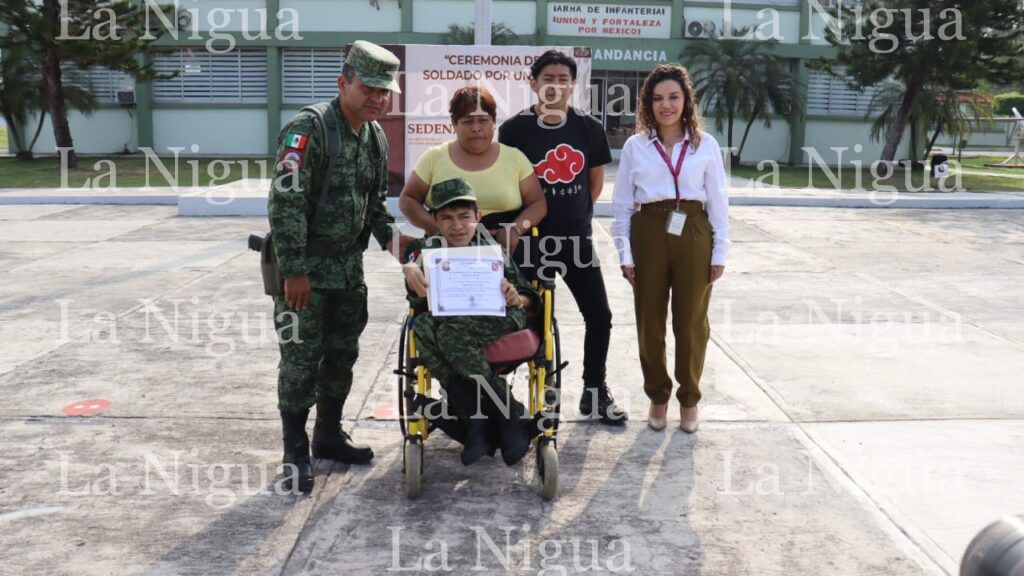 El jovencito, quien utiliza una silla de ruedas fue recibido junto con su familia ante al personal militar y de la Guardia Nacional para saludar a cada uno de ellos y así reconocer su gran servicio a los mexicanos y la patria.