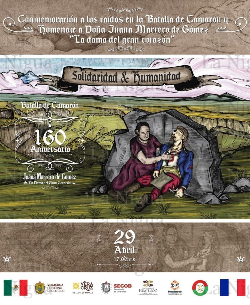 En conmemoración del 160 Aniversario de la #BatallaDeCamarón y en Homenaje a 𝑫𝒐𝒏̃𝒂 𝑱𝒖𝒂𝒏𝒂 𝑴𝒂𝒓𝒓𝒆𝒓𝒐 𝒅𝒆 𝑮𝒐́𝒎𝒆𝒛 ❞𝑳𝒂 𝑫𝒂𝒎𝒂 𝒅𝒆𝒍 𝑮𝒓𝒂𝒏 𝑪𝒐𝒓𝒂𝒛𝒐́𝒏❞, símbolo de nuestra identidad, que con su demostración de solidaridad y humanidad, dio base a las generaciones huatusqueñas de fraternidad y generosidad.