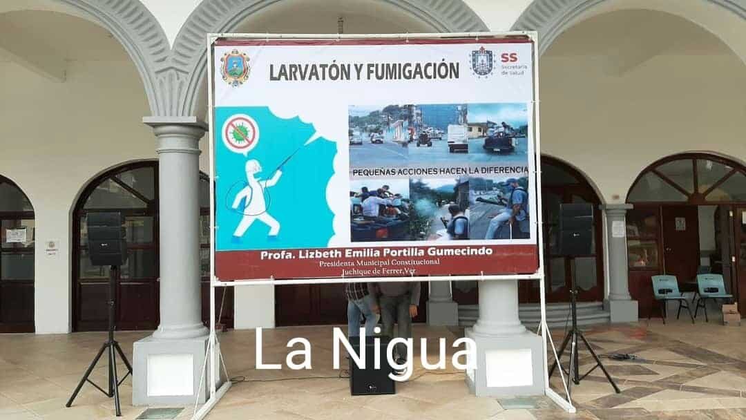 Juchique de Ferrer,Ver.-Como lo han hecho siempre las autoridades municipales previniendo y protegiendo a todos los habitantes de este municipio, la presidenta municipal Mta. Lizbeth Emilia Portilla Gumecindo, dio inicio a las acciones de ” Larvatón y fumigación y Descacharrización”, de esta manera para evitar la proliferación del mosco que causa Chincungunya, Zika y Dengue, como siempre la autoridad municipal le da las gracias al personal de la jurisdicción sanitaria número IV, por su apoyo.